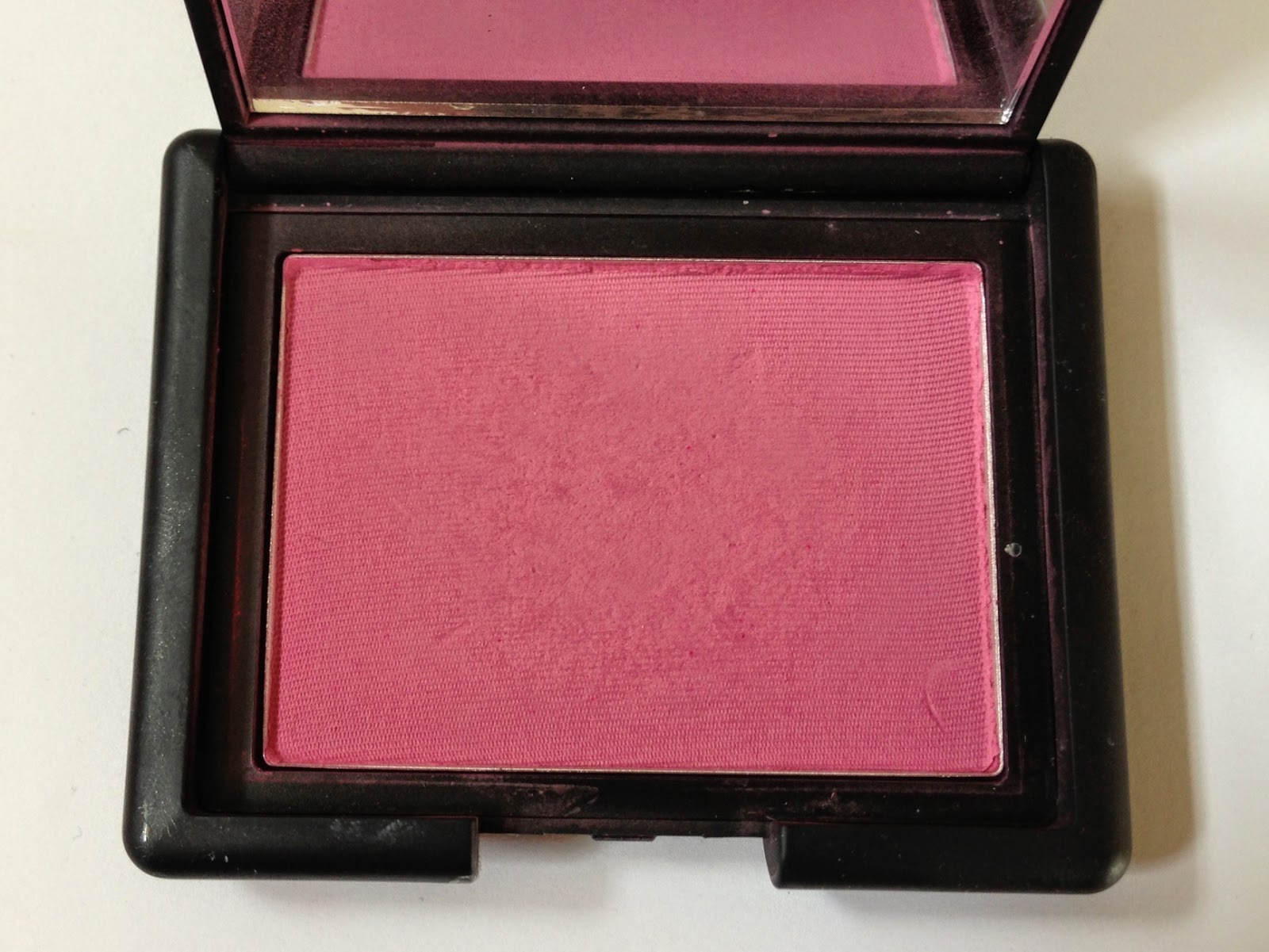 That's my entire blush collection. The peach is my very first blush (sniff!), the powdery-perfumey CoverGirl Rose Silk, which I almost never wear. The fluoro magenta is NARS Coeur Battant, a limited-edition blush from the 2013 holiday collection.